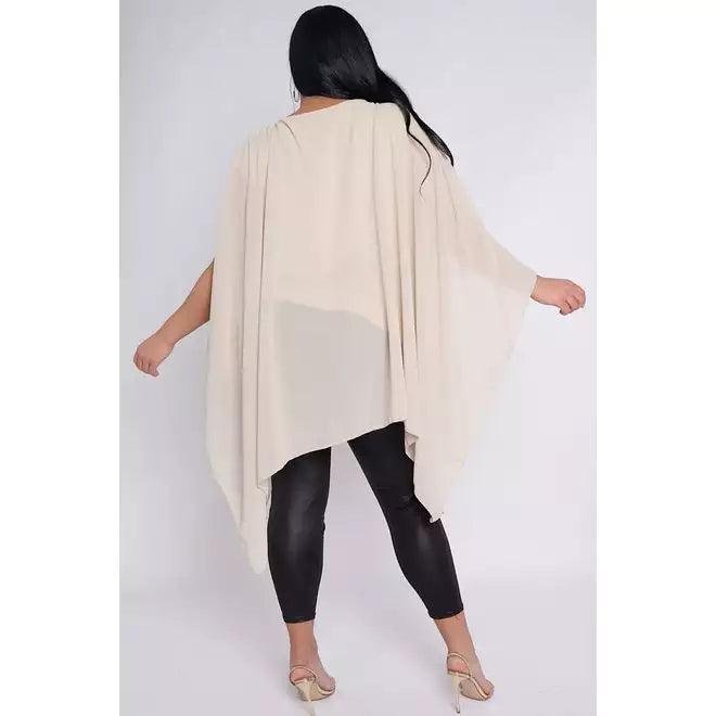Dahlia PLUS SIZE Beige Sheer Cape Style Batwing Top