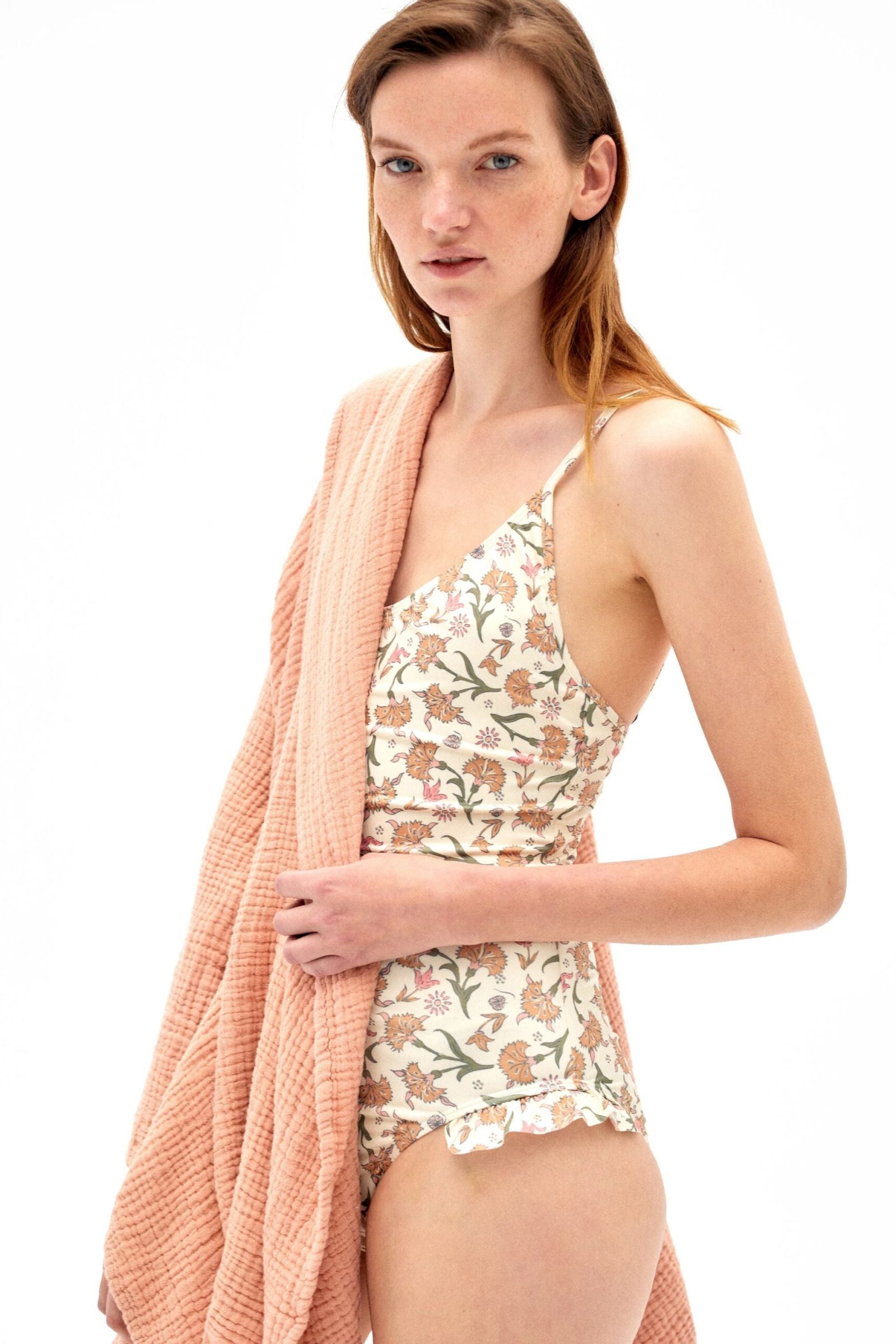 The Indiana eco-friendly women’s one-piece swimsuit is made from recycled fabric with sun protection. The thin straps, V-neckline, and a deeper cut in the back with ruffle detail at the bottom will give you a feminine look in this women’s swimsuit this summer. The perfect shape of an eco-friendly swimsuit will fit any body shape.