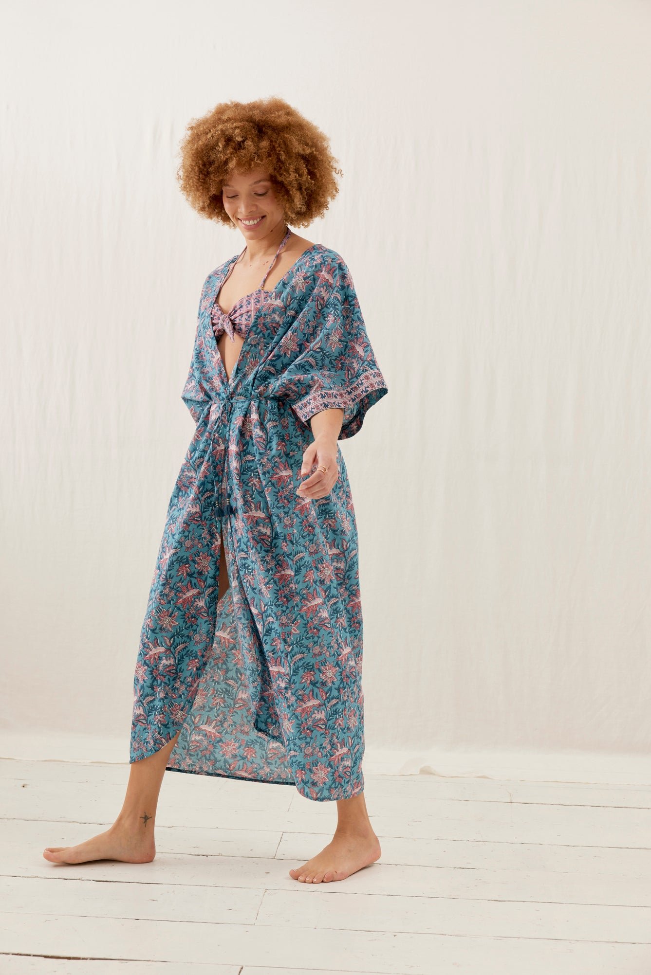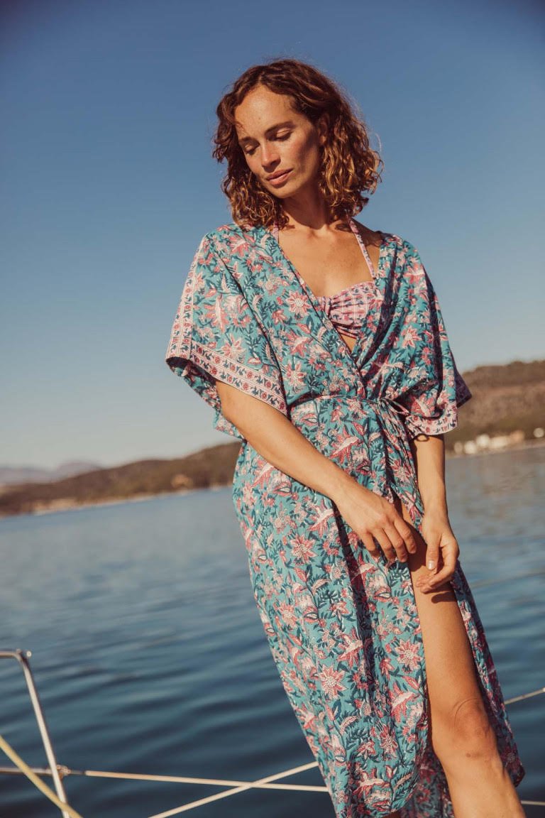 This women’s kimono is so soft and easy to wear that it is our favourite addition to our summer wardrobe and a must-have for our beachwear collection. It covers up our shoulders from the sun, and we just love lounging in it. Yes, it can also be used as a casual wrap dress.