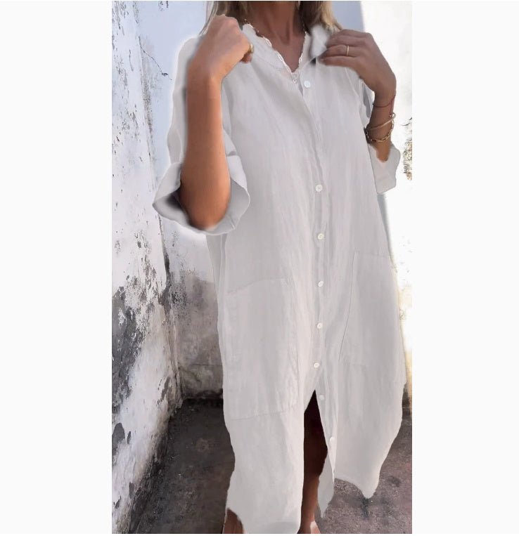 Penelope Loose Half Sleeve Linen Shirt Dress