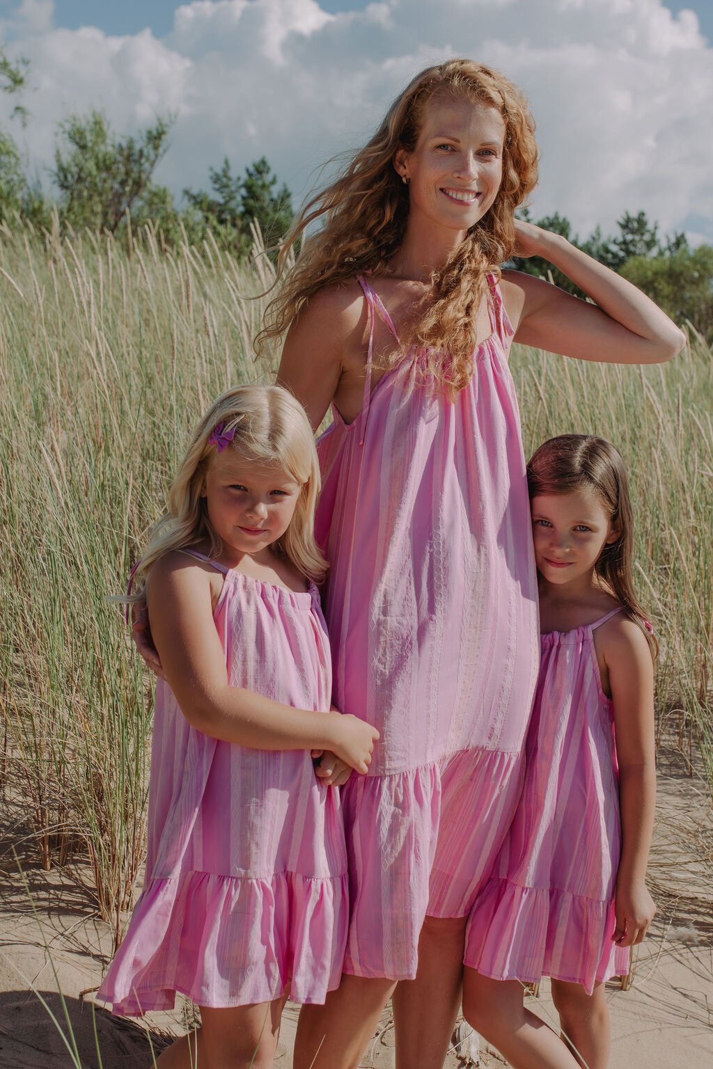 This pink dress for women you will be living in is as it is so breathable and lightweight. This women dress is made for women who love that effortless style and practicality. This flowy women dress is perfect for everyday wear, dress up or heading to your dream beach holidays. This Summer Day dress will take you to summer in whatever season you are, the freedom and confidence it will give, and the compliments you will get. The sustainable dress is made with linen and silk with a cotton lining inside, with adjustable straps, and is free-fitting. Local Hong Kong artists crafted this pink women’s dress from deadstock fabric. Our always very favourite Mini Me dress is available for that special Mommy and Daughter matching time together.